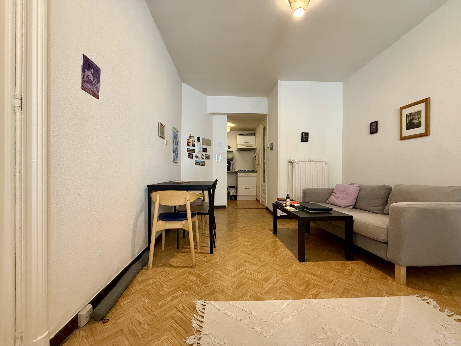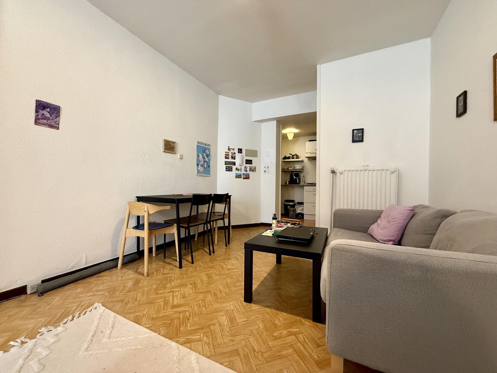 Situé à deux pas de la Place Flagey, By the Way vous présente ce charmant studio non meublé de +/- 32m2 (selon PEB), au rez-de-chaussée d’un immeuble de 3 étages sans ascenseur. Composition : pièce de vie (salon, salle à manger et coin chambre), cuisine ouverte équipée d’un petit frigo et de taques au gaz et salle de douche avec WC. Caves au sous-sol. Charges : provision de 114€/mois (entretien des communs, eau froide, assurance et frais de gestion). Compteurs individuels pour le gaz et l’électricité. PEB E-. Libre le 1er mai 2025. Bail d’un an.
