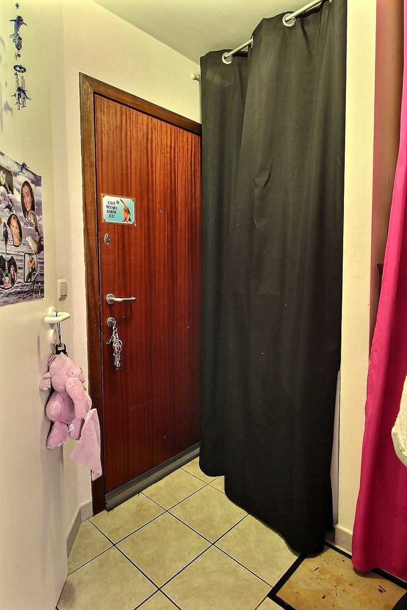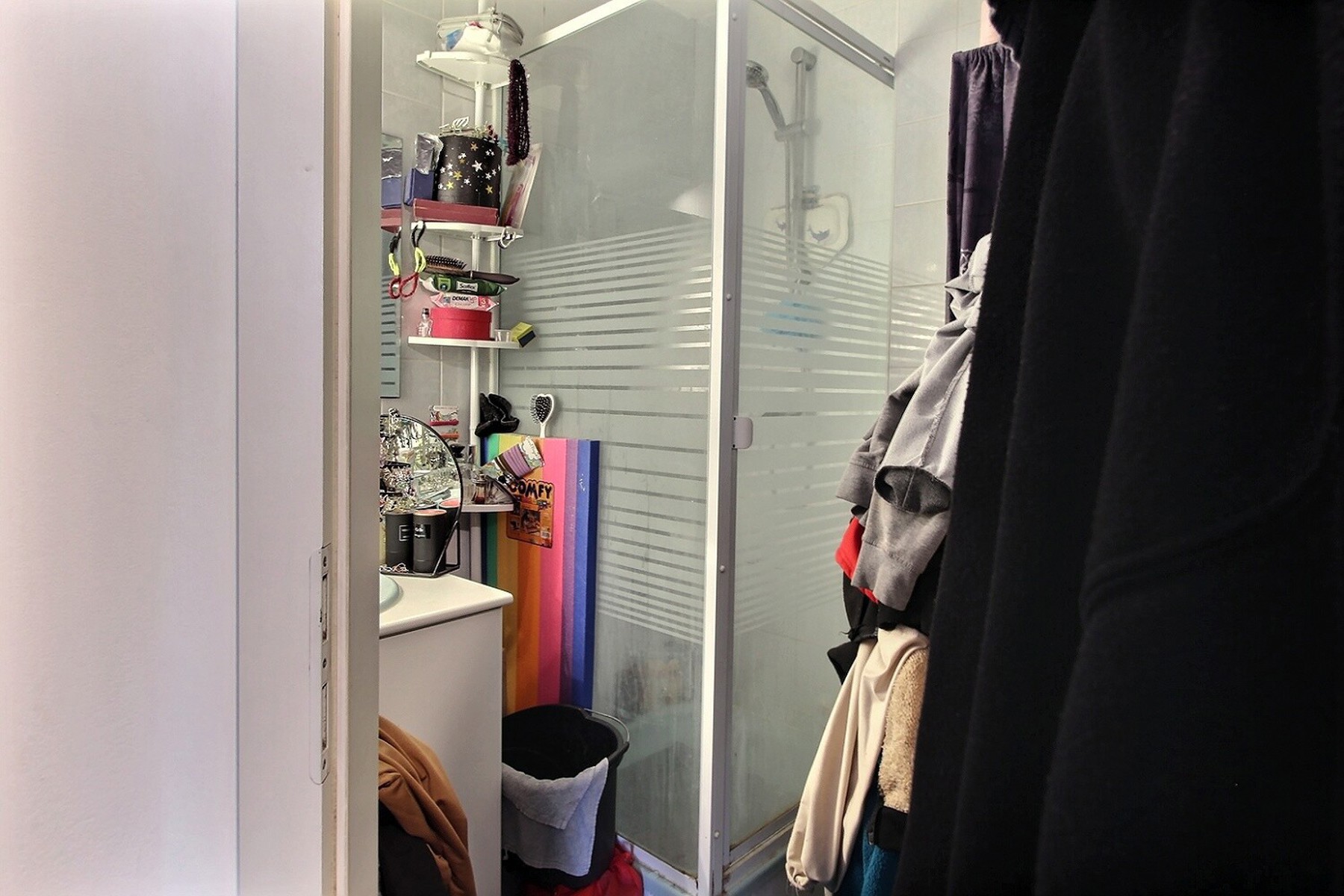 Ce studio est aménagé d’une chambre grâce à des cloisons , créant un espace de nuit avec une chambre et sa salle de bain.